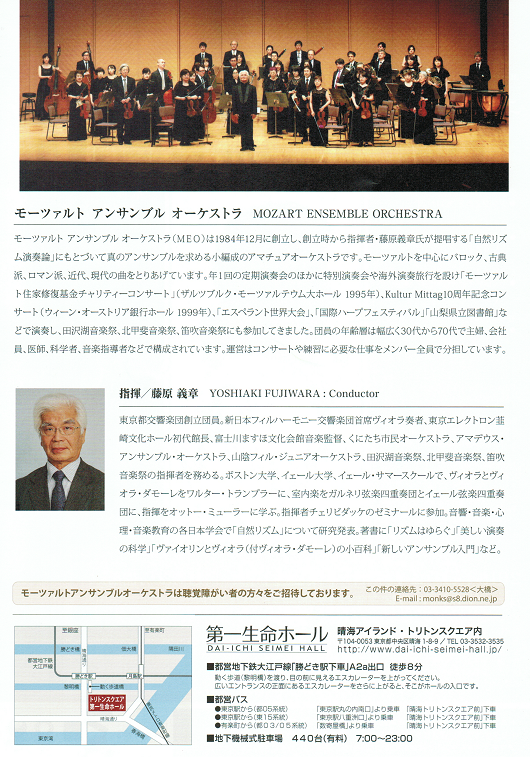 ● 第34回定期演奏会 第一生命ホール 14時開演(13:30開場) クリスチャン・バッハ シンフォニア 変ロ長調 ハイドン 交響曲第103番 変ホ長調 「太鼓連打」 シベリウス 組曲「ペレアスとメリザンド」 作品46 モーツァルト 交響曲第31番 ニ長調 K.297「パリ」 入場料: 2,000円(全席自由) チケット前売: ローソンチケット 0570-000-407 (Lコード: 31665) CNプレイガイド 0570-08-9990 www.cnplayguide.com お問い合わせ: 新演奏家協会 03-3561-5012 http://www.shin-en.jp