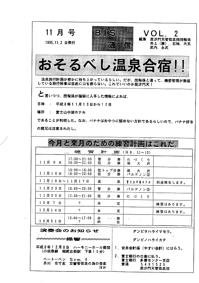 おそるべき温泉旅行・練習日程