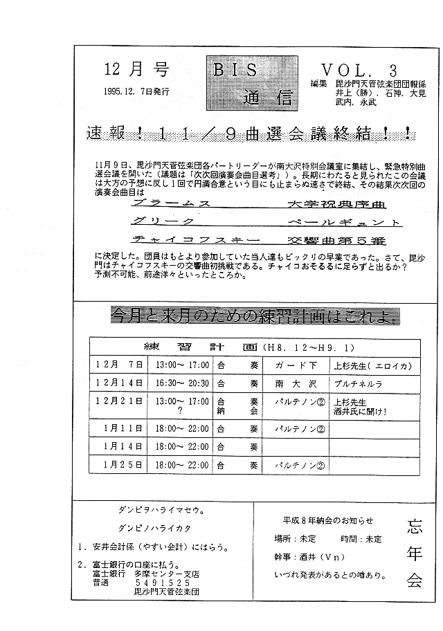 選曲会議報告・練習日程