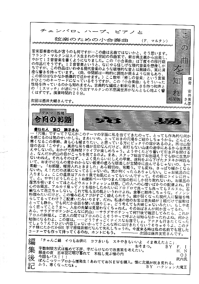 (Cl:安井さん)・「穴場」(Hr:田口さん)