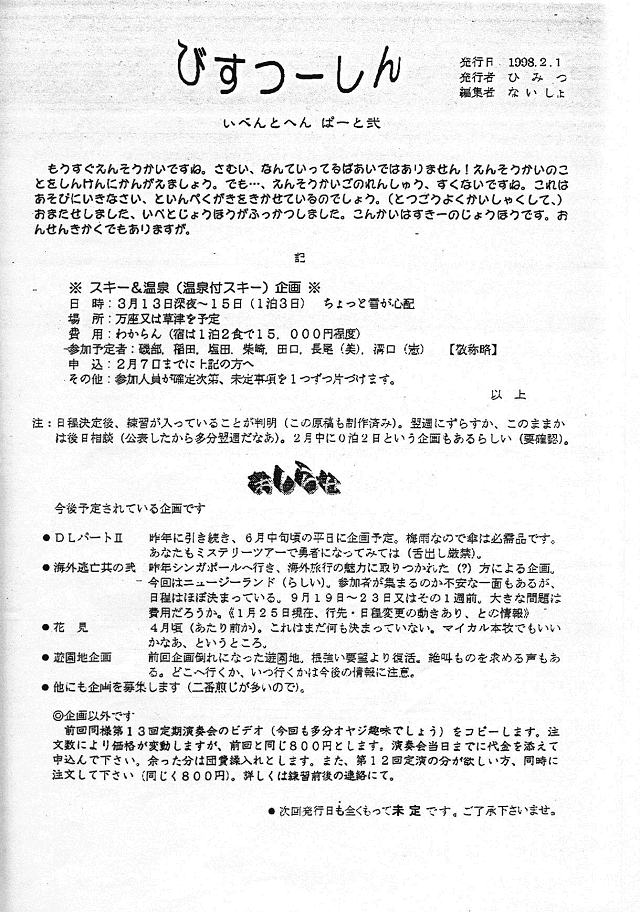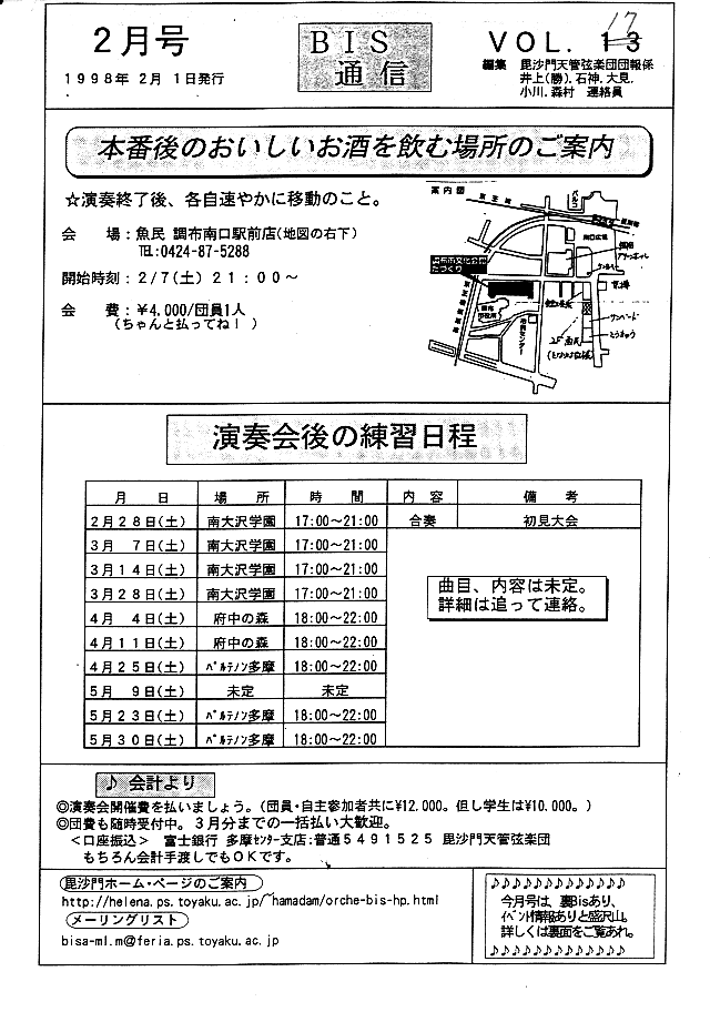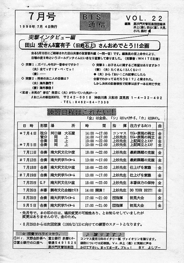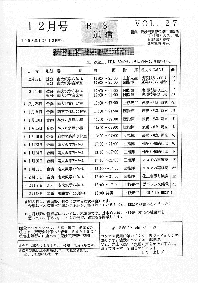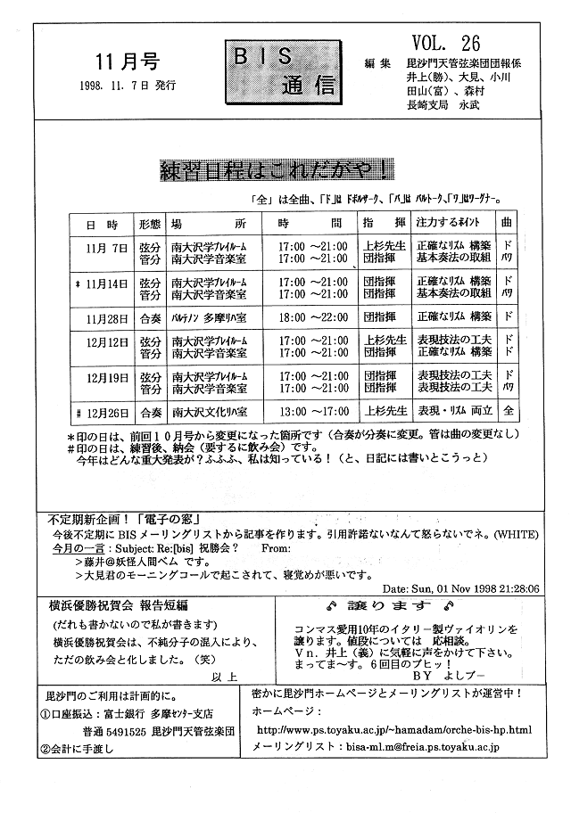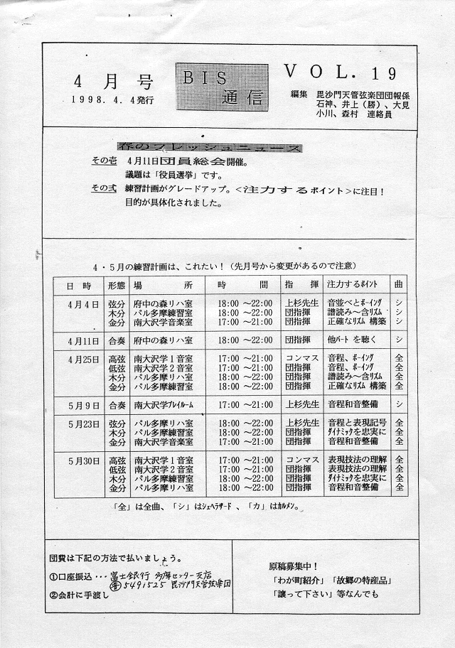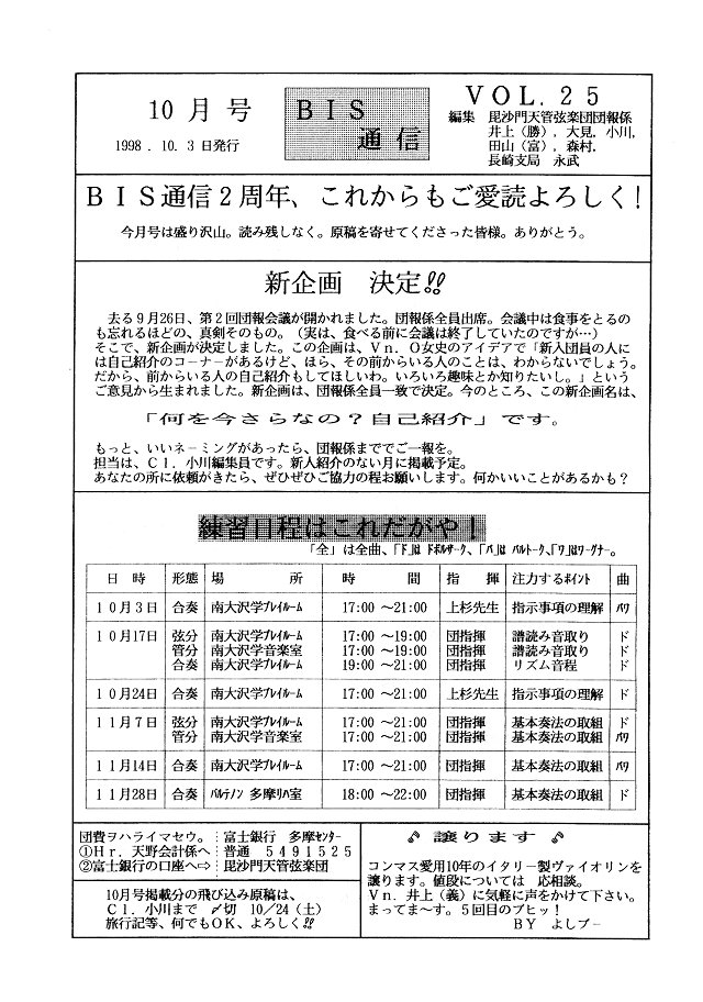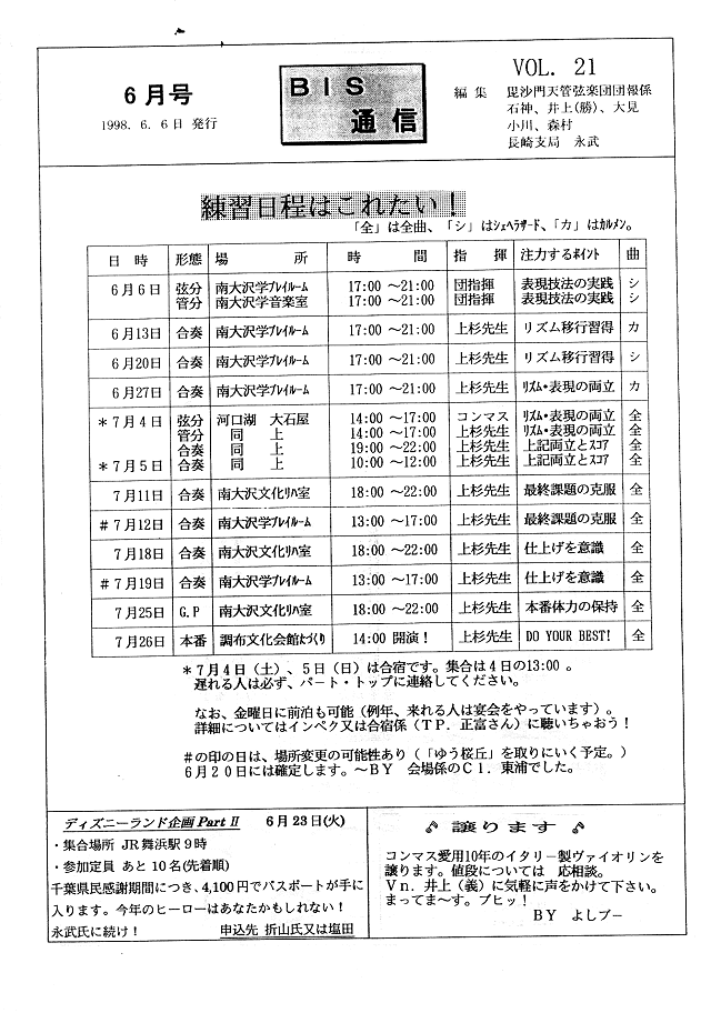 BIS通信2周年・練習日程