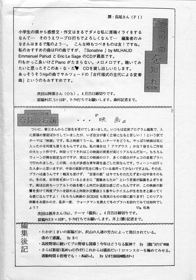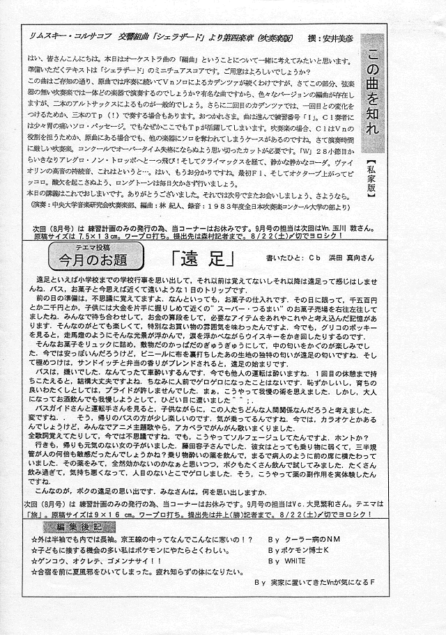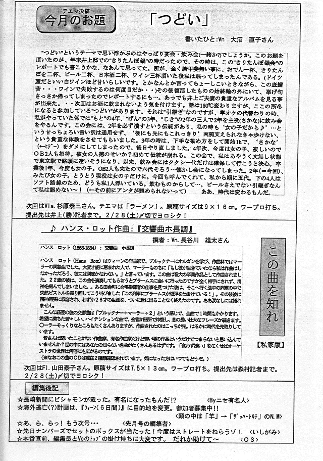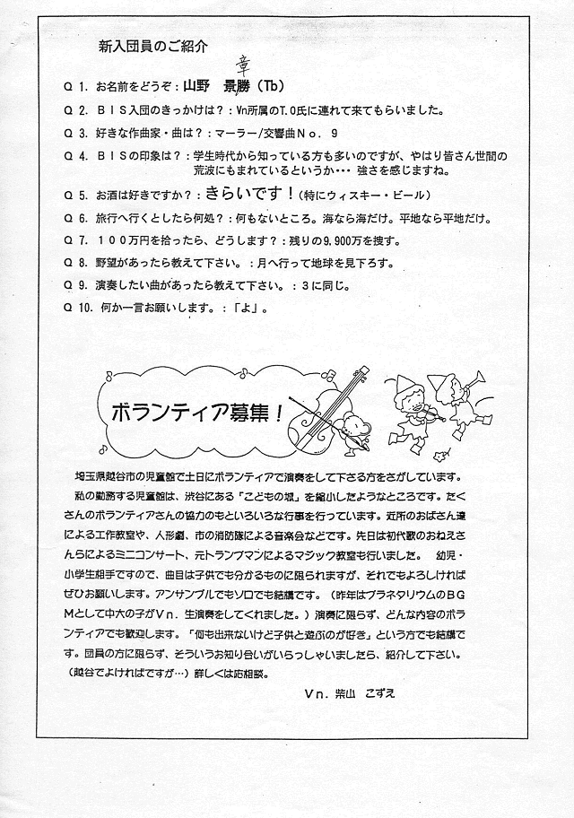 新入団員紹介(Tb:山野さん)・ボランティア募集(Vn:柴山さん)