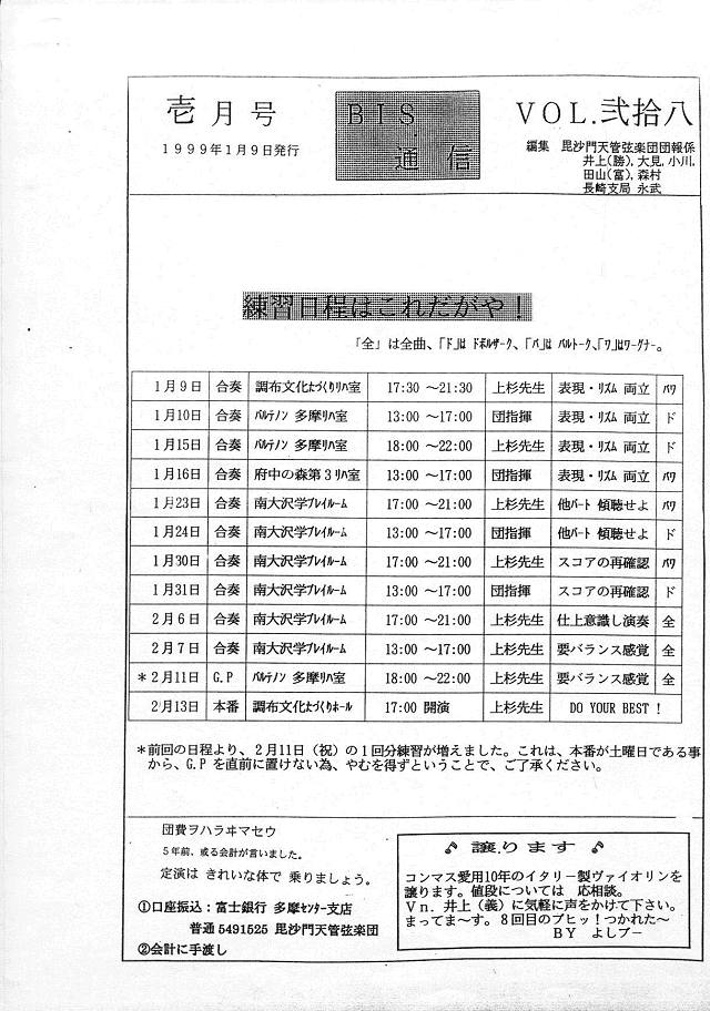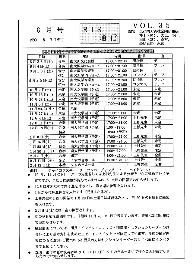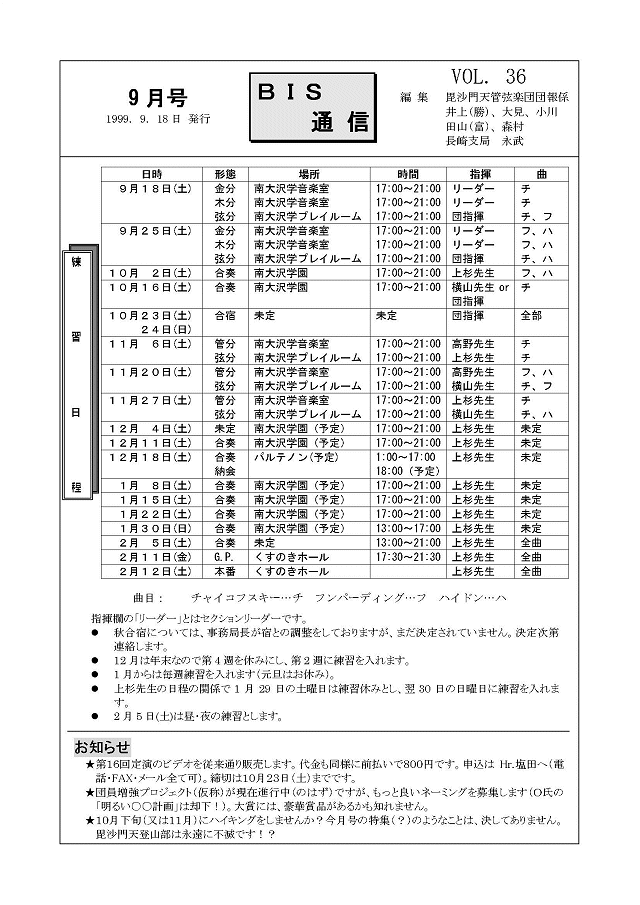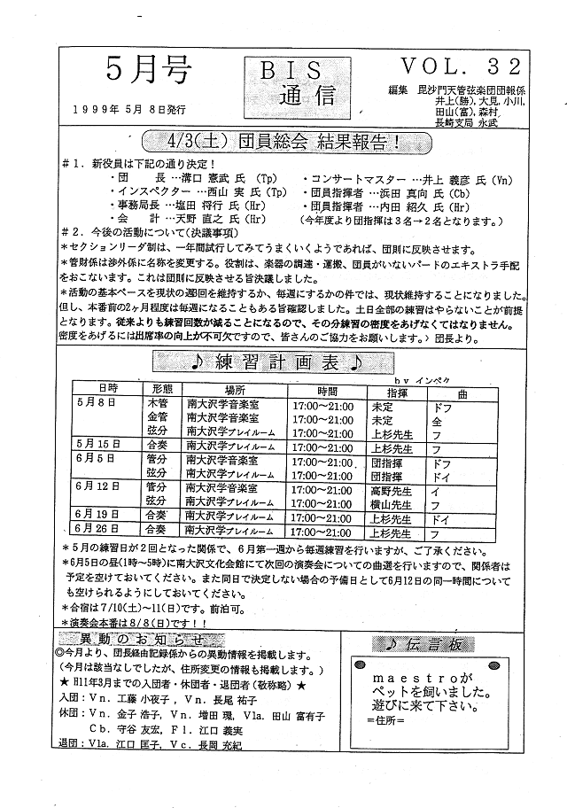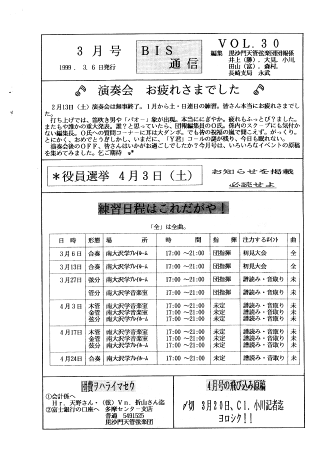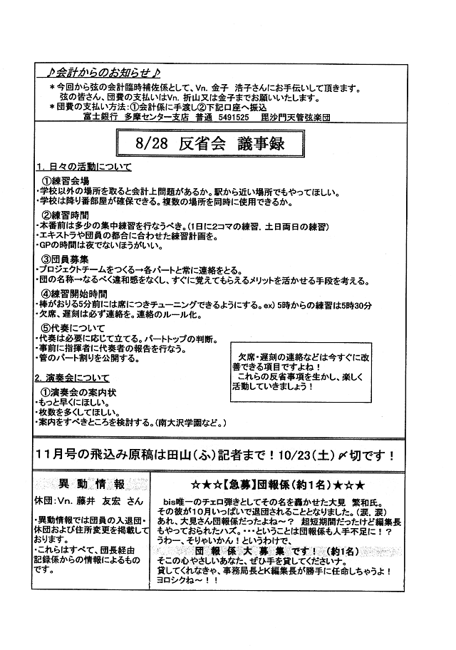 団員総会結果報告・練習日程