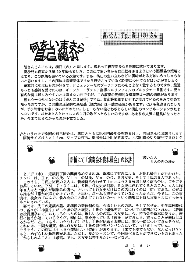 何を今さら自己紹介(Tp:溝口さん)・新橋にて「演奏会お疲れ様会」のお話