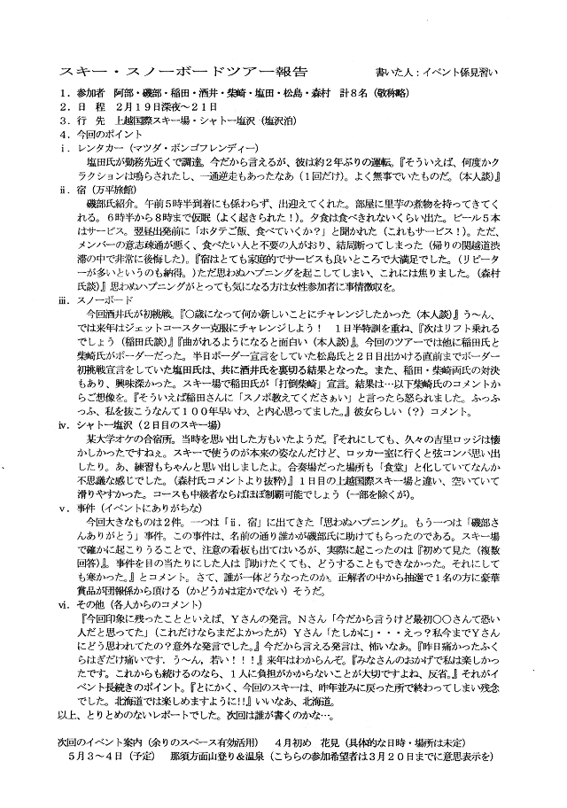 スキー・スノーボードツアー報告