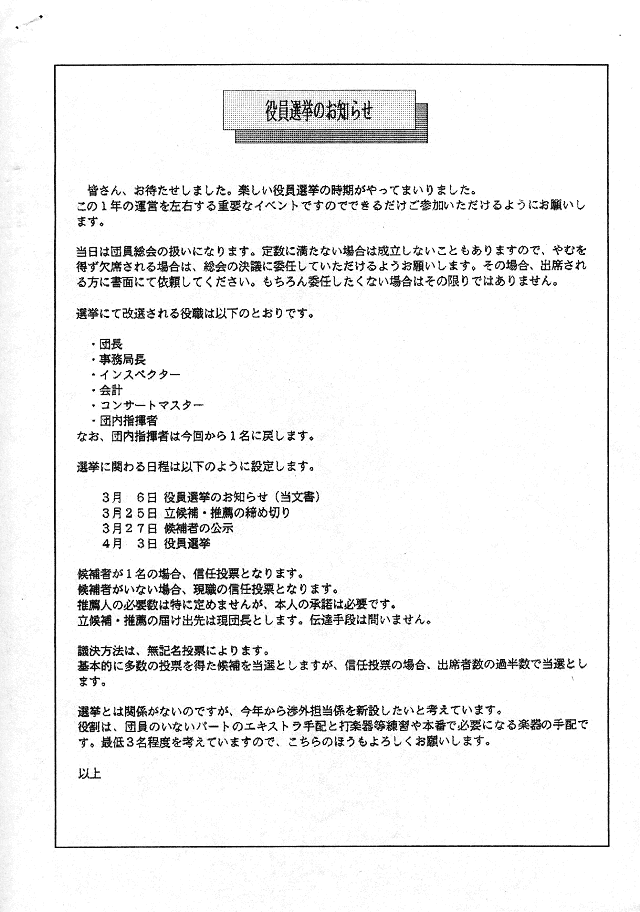 役員選挙のお知らせ