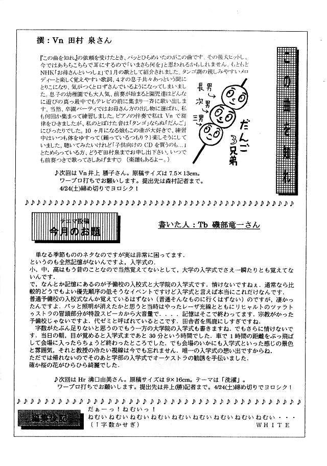 「だんご3兄弟」(Vn:田村 泉さん)・「入学式」(Tb:磯部さん)