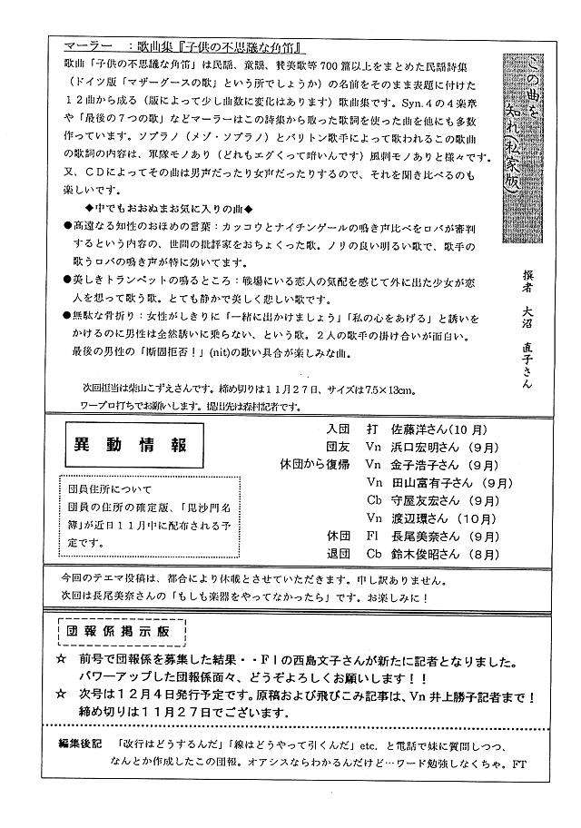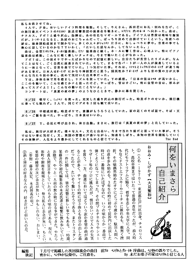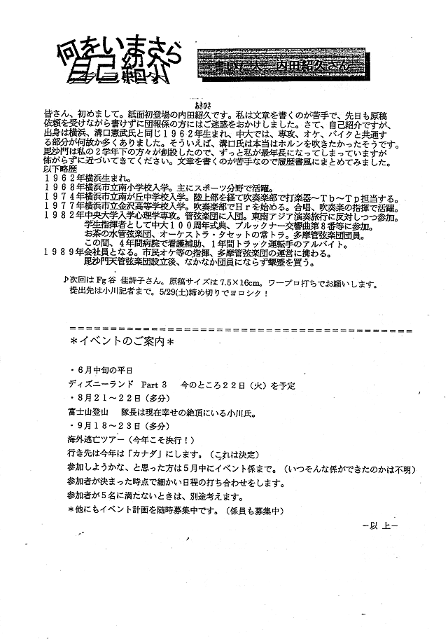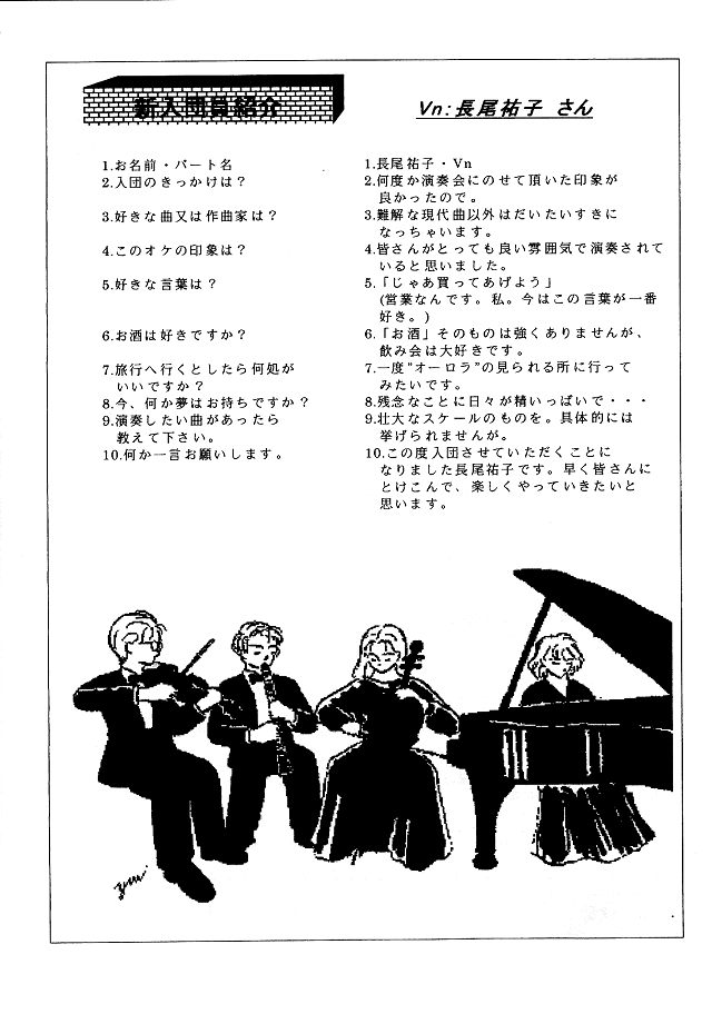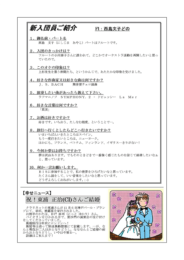 新入団員ご紹介(Fl:西島さん)・祝!東浦 正治さんご結婚