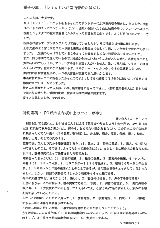 電子の窓:水戸室内管のおはなし・O氏のまな板の上のコイ序章