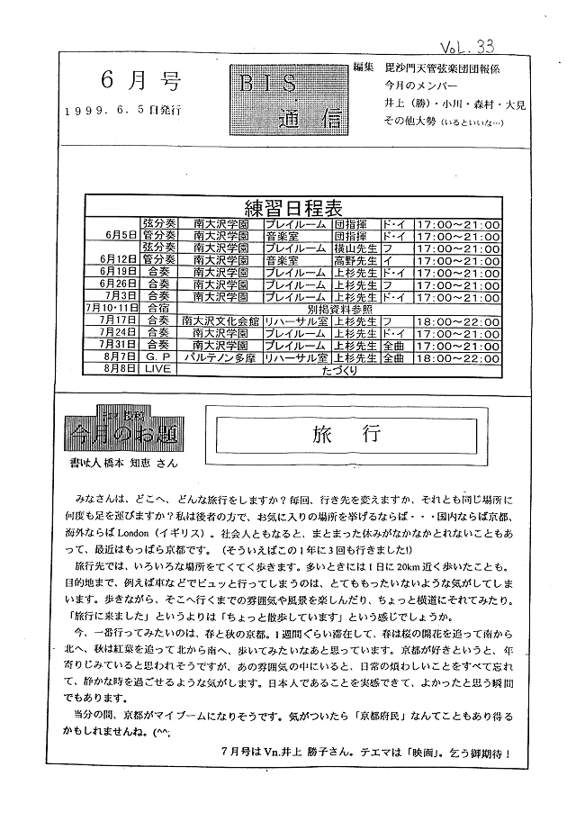 練習日程・「旅行」(Vn