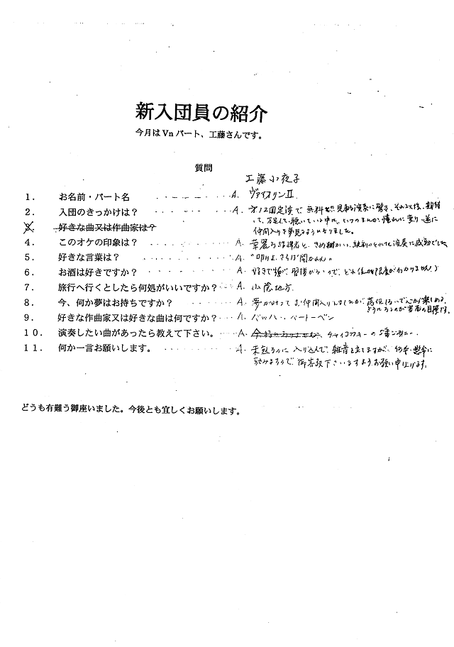 新入団員の紹介(Vn:工藤さん)