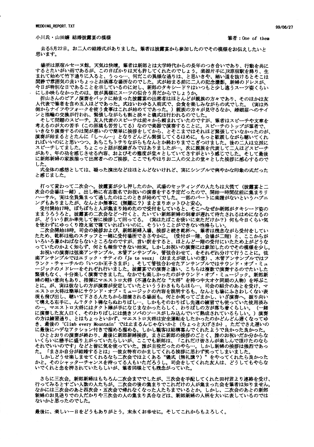 小川氏・山田嬢結婚披露宴の