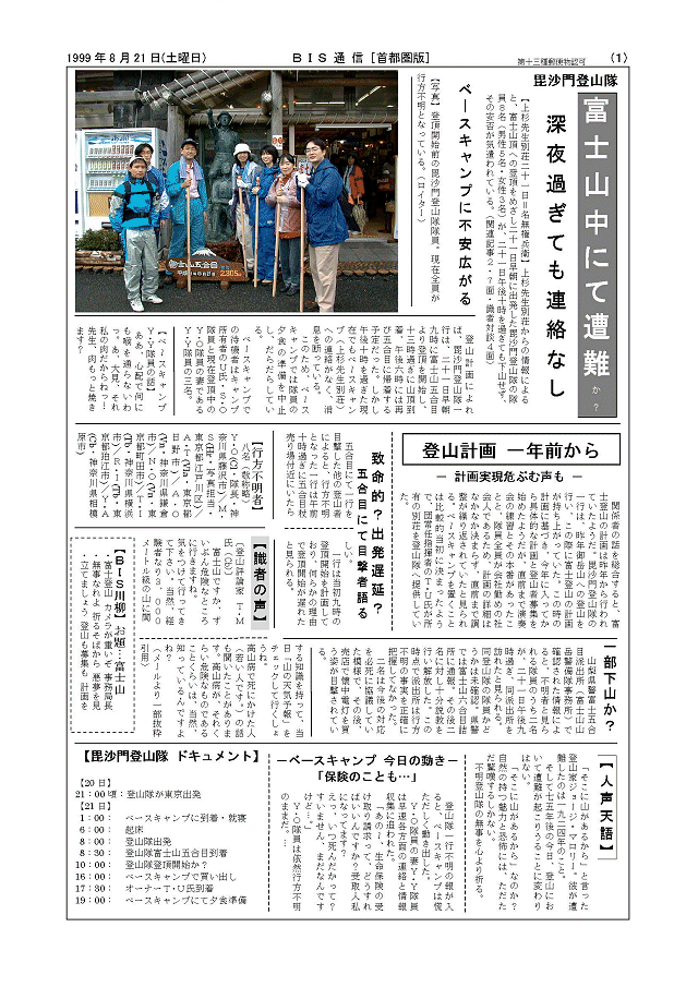 富士山中にて遭難