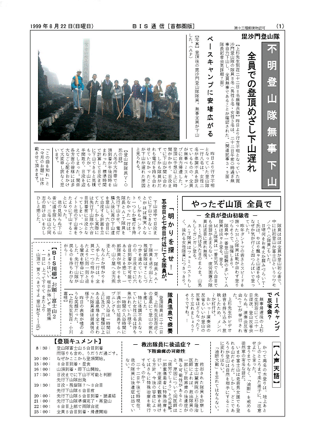 不明登山隊無事下山