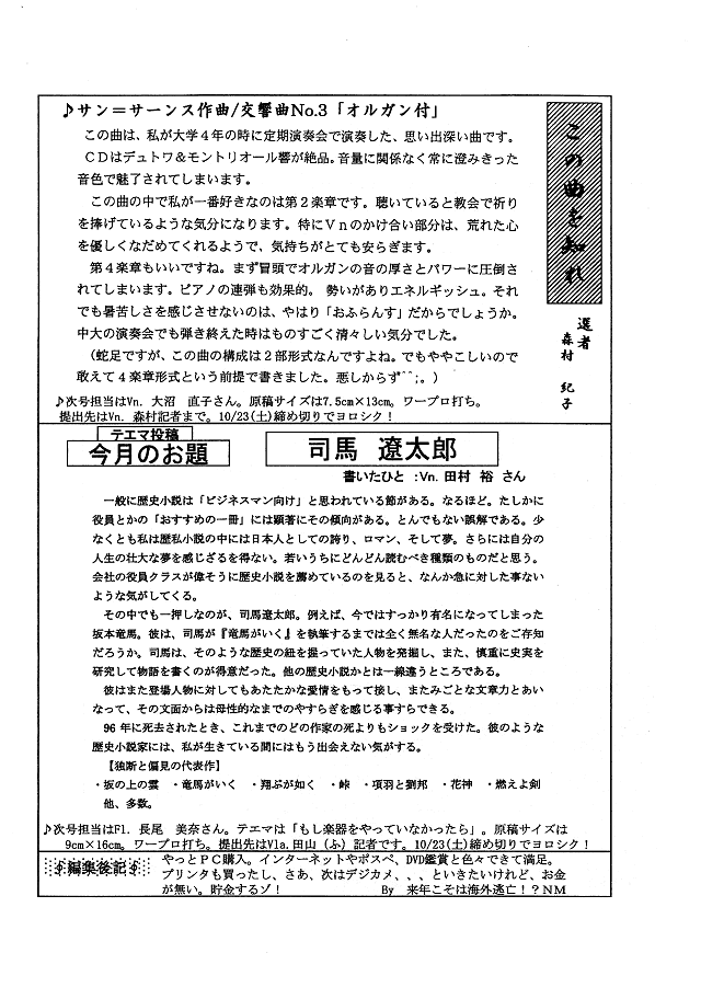 「司馬遼太郎」(Vn:田村さん)