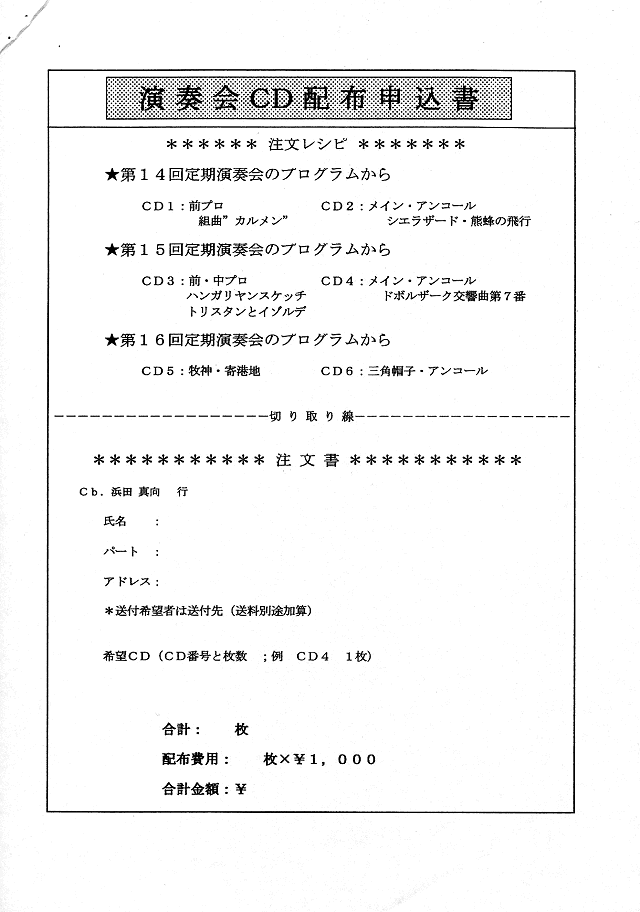 演奏会CD配布申し込み書